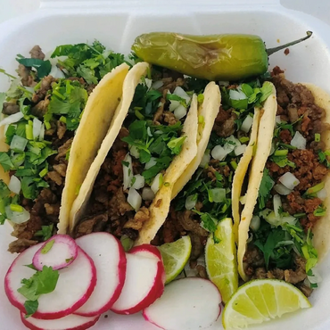 Three (3) tacos of your choice of meat (excludes Birria) served on a corn tortilla with onions & cilantro, and a side of rice and beans.